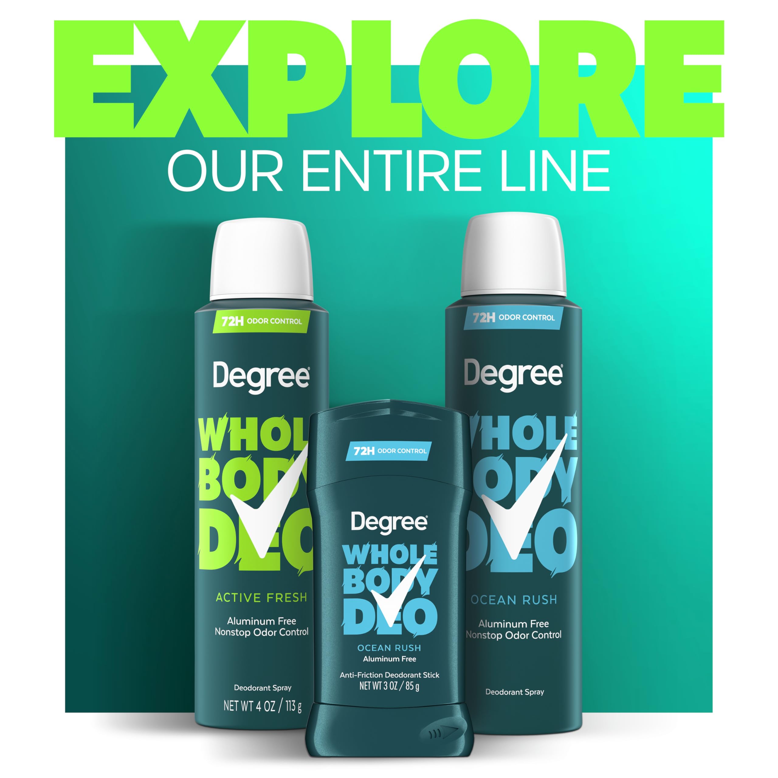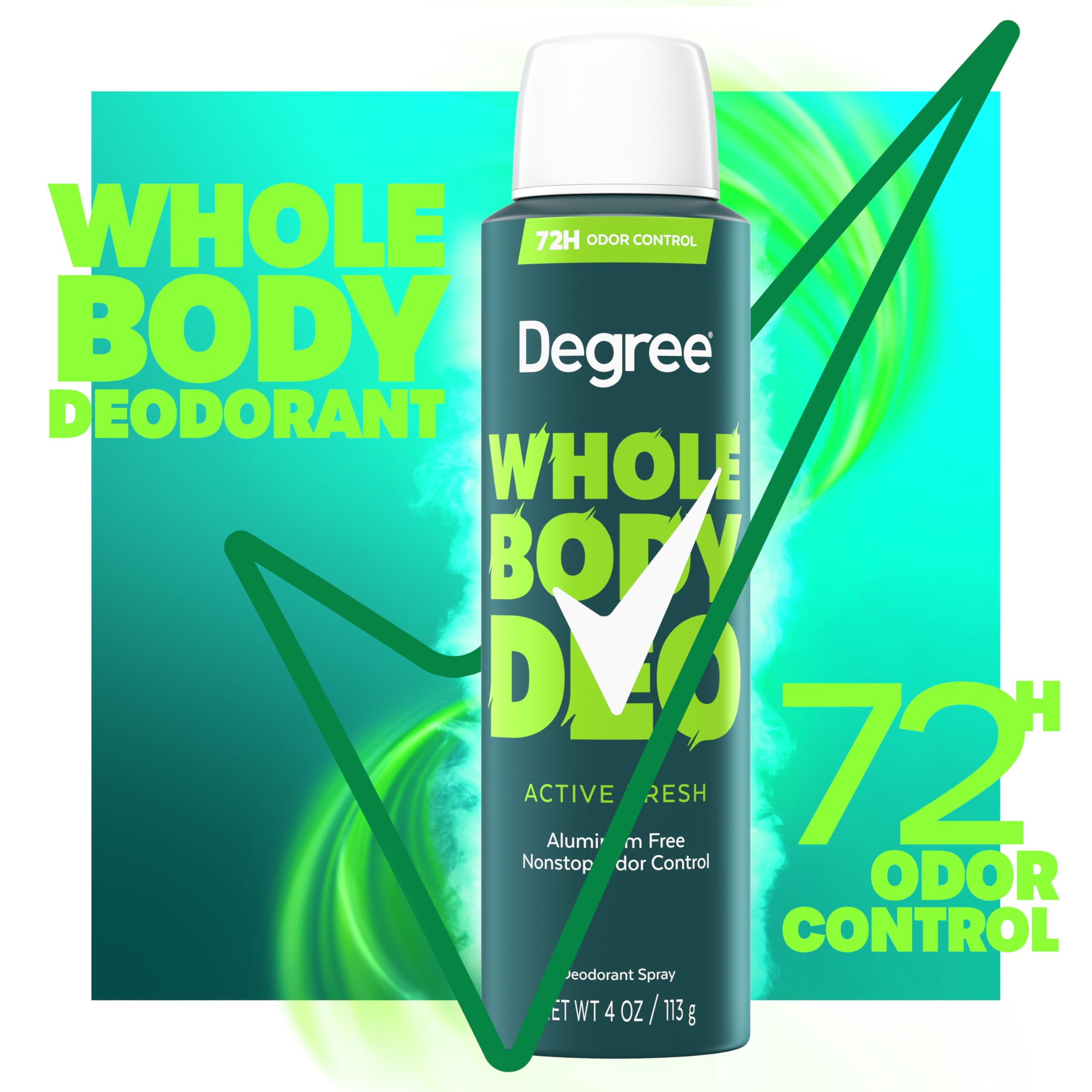 - KEEP FRESH: Affordable and effective, Degree Men’s Whole Body Deodorant Spray provides up to 72hrs of odor protection.