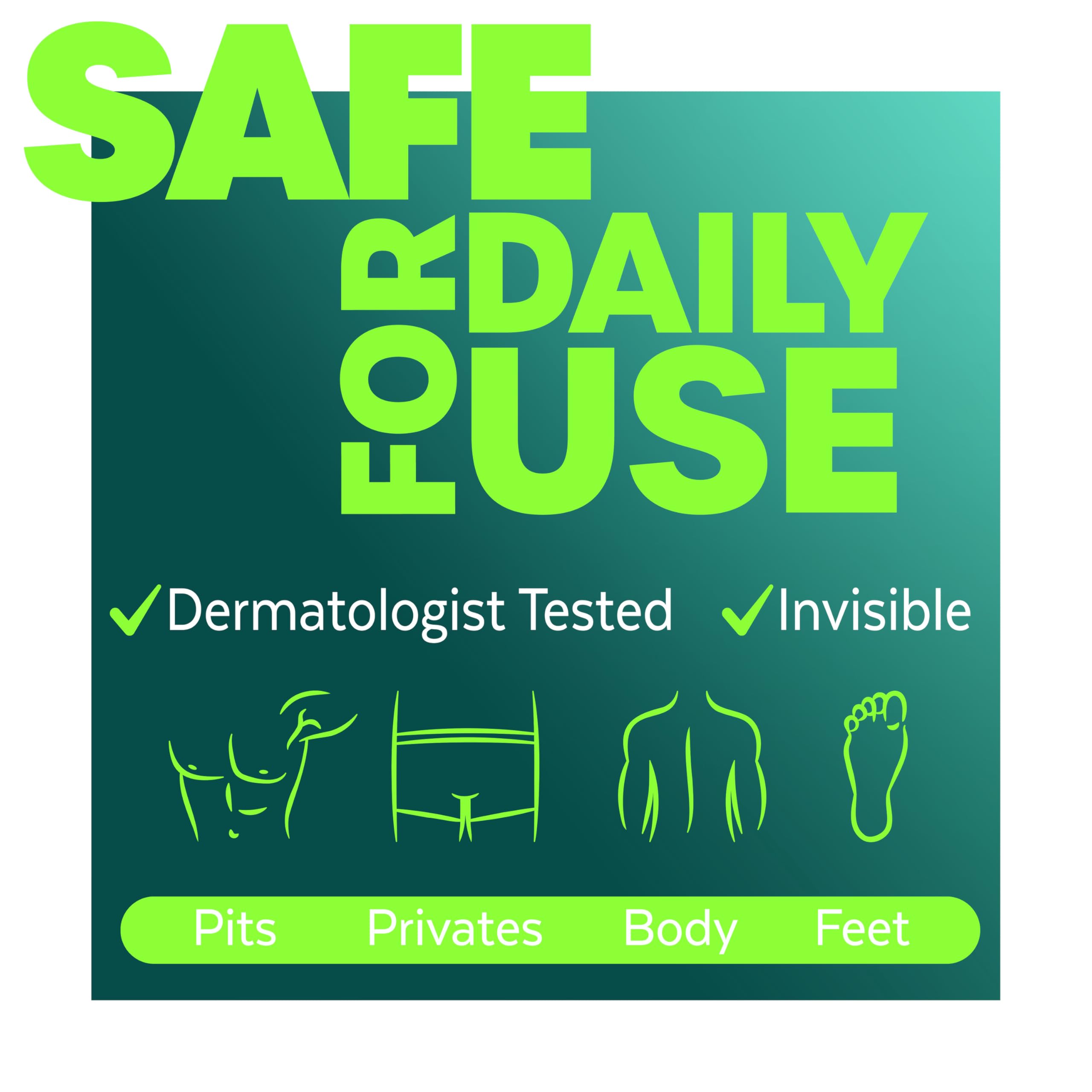 - USE FOR PITS, PRIVATES, BODY AND FEET: Use it anywhere you want to tackle odor, including your pits, privates, body, and feet. Feel fresh and confident throughout the day.