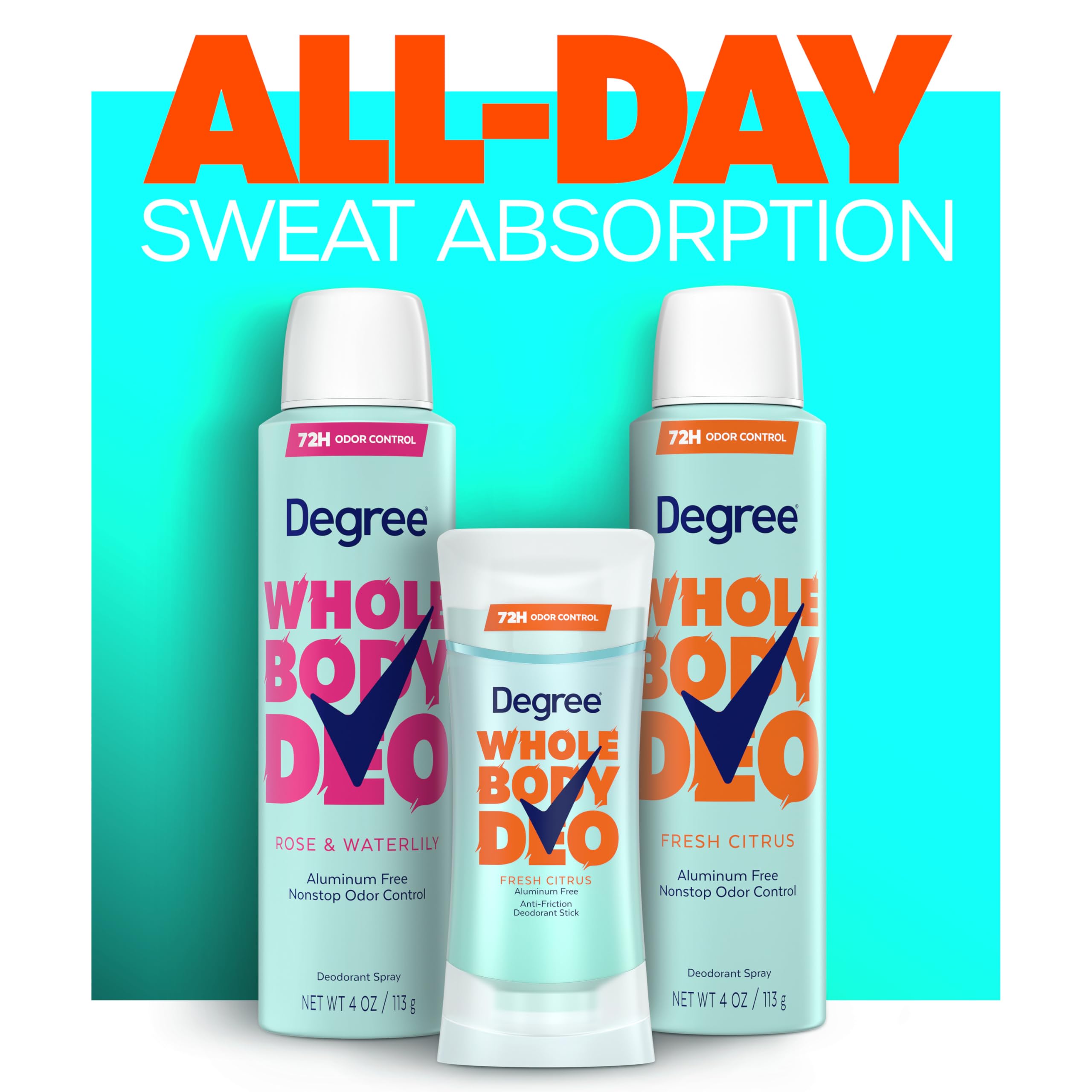 - KEEP FRESH: Affordable and effective, Degree Women’s Whole Body Deodorant Spray provides up to 72hrs of odor protection.